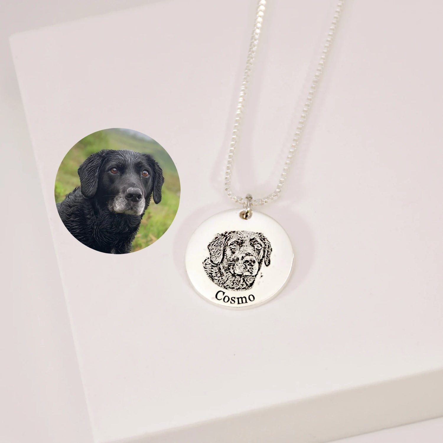 Notre collier personnalisable avec le portrait et le nom de votre compagnon à quatre pattes est un moyen unique d'exprimer votre amour pour celui-ci. Que vous ayez un adorable chien ou un magnifique chat, ce bijou personnalisé vous rappellera au quotidien votre animal, que vous l'ayez malheureusement perdu ou qu'il soit encore à vos côtés.