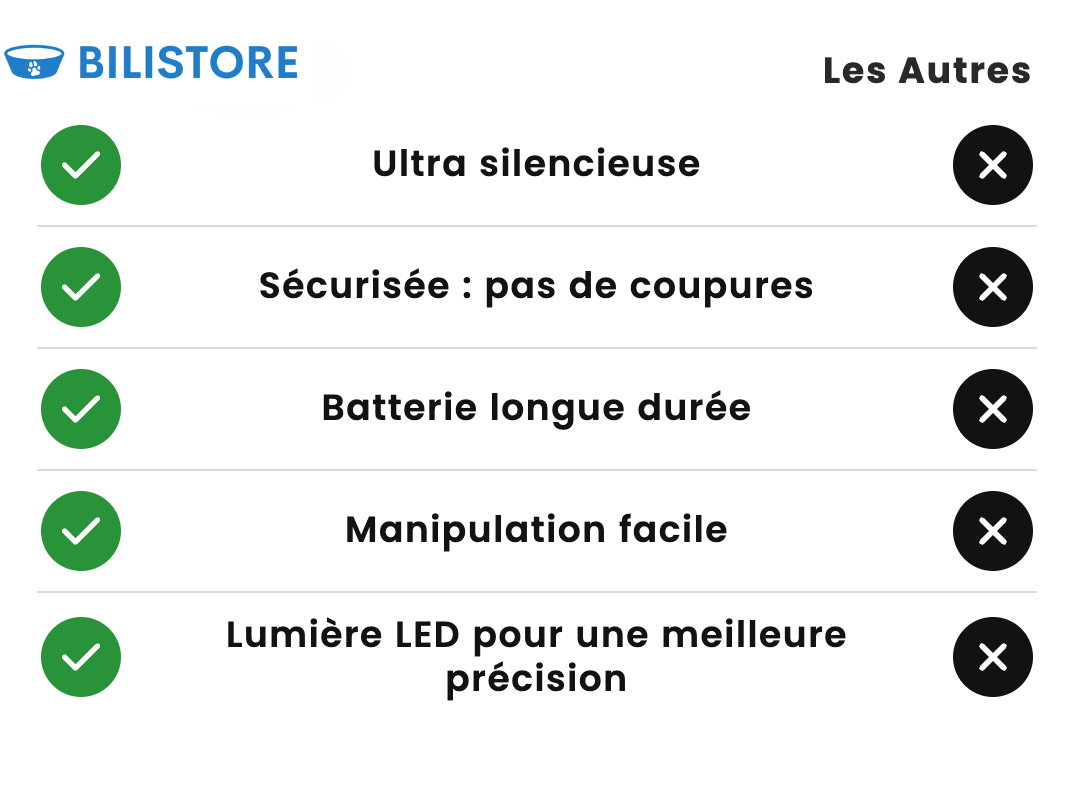 Plus besoin de dépenser pour des séances mensuelles chez le toiletteur. Avec notre tondeuse silencieuse, spécialement conçue pour les animaux sensibles au bruit, vous pouvez prendre soin des pattes de votre compagnon sans stress, et tout ça à domicile. En évitant les déplacements réguliers et coûteux, vous économisez du temps et de l’argent tout en offrant un soin apaisant à votre animal.